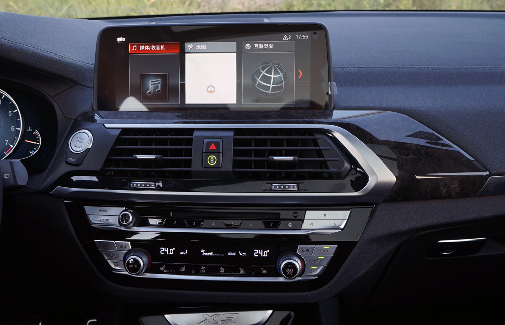 现款宝马X3无论在做工还是用料方面都十分有讲究,中控台采用面料为Sensatec皮革包裹,搭配独特纹路的光滑木纹饰板装饰,细节之处还采用了缝线处理,为营造车厢的豪华氛围感下了不少功夫。