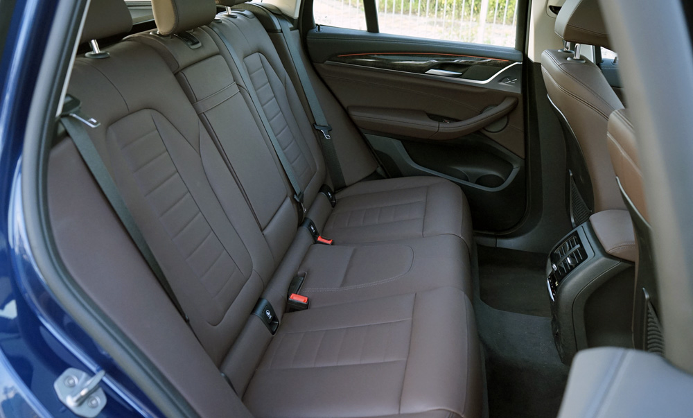 虽然只是标轴,但实际上新X3的后排空间上并没有什么劣势,相比Q5L一点不觉小,但比起GLC-L确实是小一些,不过,考虑到中国人的普遍身高也就在165-180cm之间,这个空间完全是够用的。侃弟身高175cm,觉得头顶和腿部都很充裕,只是不能翘起二郎腿。