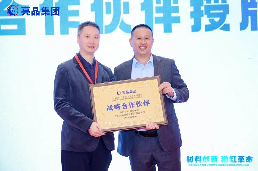 最后,活动在授牌仪式后顺利落下帷幕。亮晶董事长为战略合作伙伴颁发的牌匾,既是携手共进的承诺,也是助力企业破除内卷,开辟市场新蓝海的一把钥匙。未来,亮晶将继续以技术创新为核心驱动力,推出更多满足行业转型升级需求的创新产品,与全球合作伙伴携手,共同推动卫浴行业向高品质、绿色化方向发展!