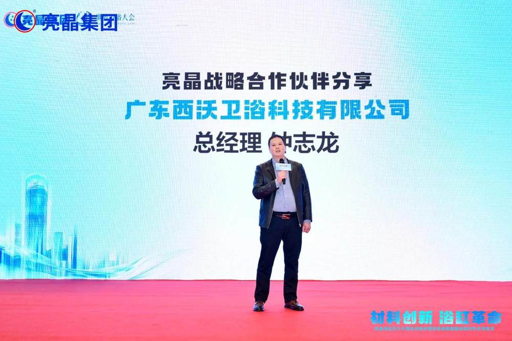 值得一提的是,在本次发布会前,已经有部分企业提前与亮晶合作,并使用了这两大新材料生产浴缸。在此次发布会上,佛山市高明粤华卫生洁具有限公司总经理黄杰森、四川贝加特卫浴有限公司总经理钟天刚、广东西沃卫浴科技有限公司总经理钟志龙相继上台,对自己与亮晶的合作进行分享。